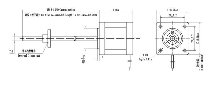 1、丝杆长度可以定制,建议最大长度300(螺母有白色POM材料和铜材料可选)
