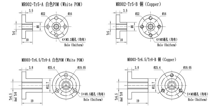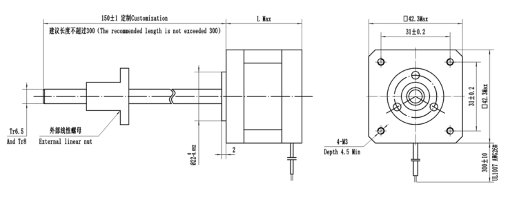 1、丝杆长度可以定制,建议最大长度300(螺母有白色POM材料和铜材料可选)