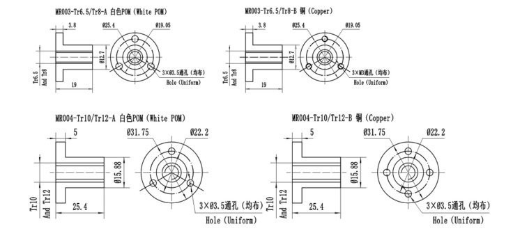 1、丝杆长度可以定制,建议最大长度300(螺母有白色POM材料和铜材料可选)