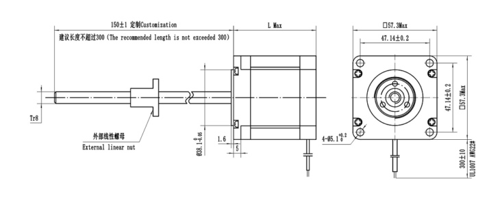 2、根据客户使用的不同直线速度和推拉力,选择合适的电机机身以及螺杆规格(影响直线速度主因素是螺杆导程,如导程1mm,电机每旋转一圈就是螺杆运行1mm距离,关于直线电机负载可详细咨询我公司技术人员,以方便获取详细负载情况)