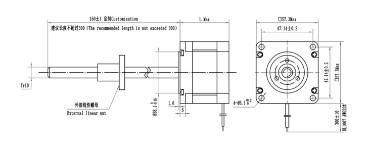 2、根据客户使用的不同直线速度和推拉力,选择合适的电机机身以及螺杆规格(影响直线速度主因素是螺杆导程,如导程1mm,电机每旋转一圈就是螺杆运行1mm距离,关于直线电机负载可详细咨询我公司技术人员,以方便获取详细负载情况)