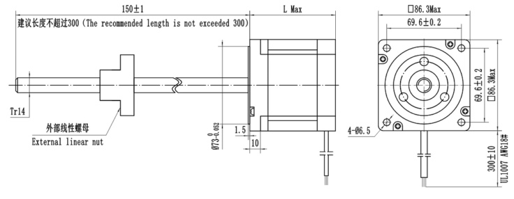 2、根据客户使用的不同直线速度和推拉力,选择合适的电机机身以及螺杆规格(影响直线速度主因素是螺杆导程,如导程1mm,电机每旋转一圈就是螺杆运行1mm距离,关于直线电机负载可详细咨询我公司技术人员,以方便获取详细负载情况)