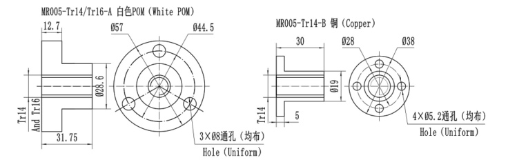 1、丝杆长度可以定制,建议最大长度300(螺母有白色POM材料和铜材料可选)